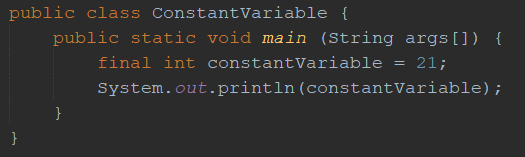A constant variable is a type of variable whose content will never be changed again after the initial assignment. To create a constant variable in Java, all you need to do is to put the "static final" keyword in front of the variable declaration.
